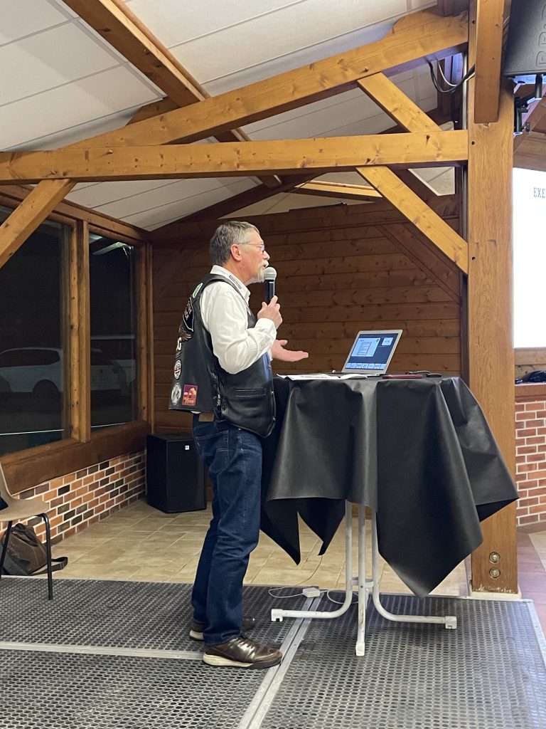 Après l’introduction par Antoine, notre concessionnaire, et le rappel de quelques principes et information par notre Directeur, se sont succédés au micro nos responsables des activités, Thierry et Patrick, notre LOH, Stéphanie et Guillaume notre trésorier. Ils ont pu présenter le bilan de l’année 2025 et le calendrier de nos rendez-vous en 2026 et quelques projets plus lointains.